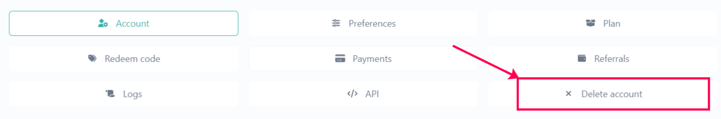 If you wish to delete your Hook2.us account, you can do so from your Account page. Click on your name either in the left menu of your dashboard or the top menu on the homepage and then click “Account.” From here, click on “Delete account” on the menu at the top of the page.