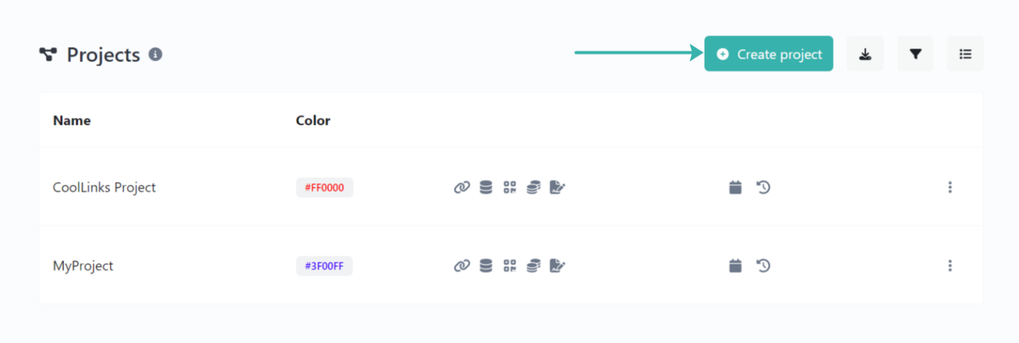 - Color: The color you assigned to your project. This color ensures different projects look different at a glance. For example, when looking at links assigned to a project, the project name will be color-coded.