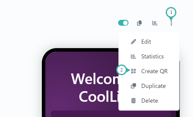 - Duplicate: Create a new QR code with the same information as the selected one.
