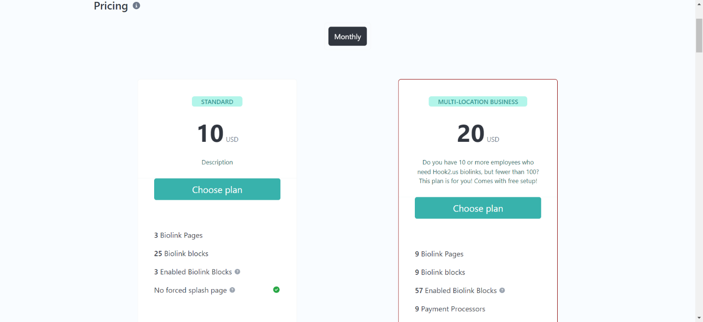 Signing up to Hook2.us is easy. First, click on either the “Sign up” button or the Pricing link in the menu at the top of the page.